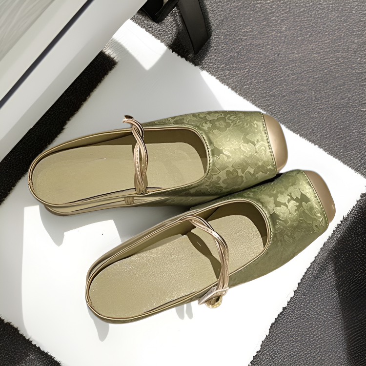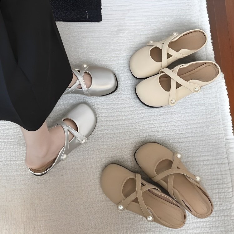 上品なシャネル風ソフトレザーつま先付きミュールサンダル レディース夏 スカートと合わせて