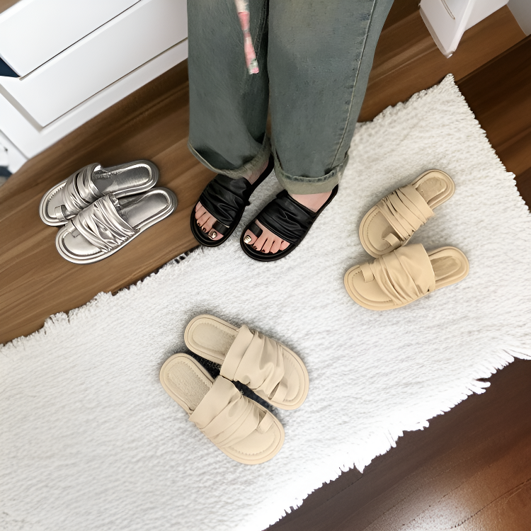 女性用カジュアルフラットふんわり感トーシューズ夏用サンダル