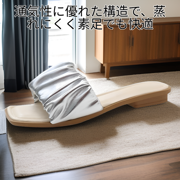 おしゃれスクエアトゥフラットビーチサンダル・レディース・夏用スリッパ