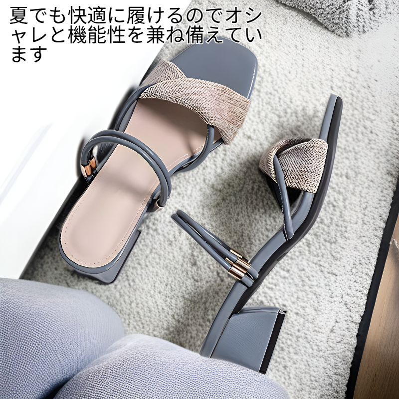 ● 夏のコーディネートにぴったりなミドルヒール高ヒールサンダルで、女性らしさとスタイルアップを両立します。